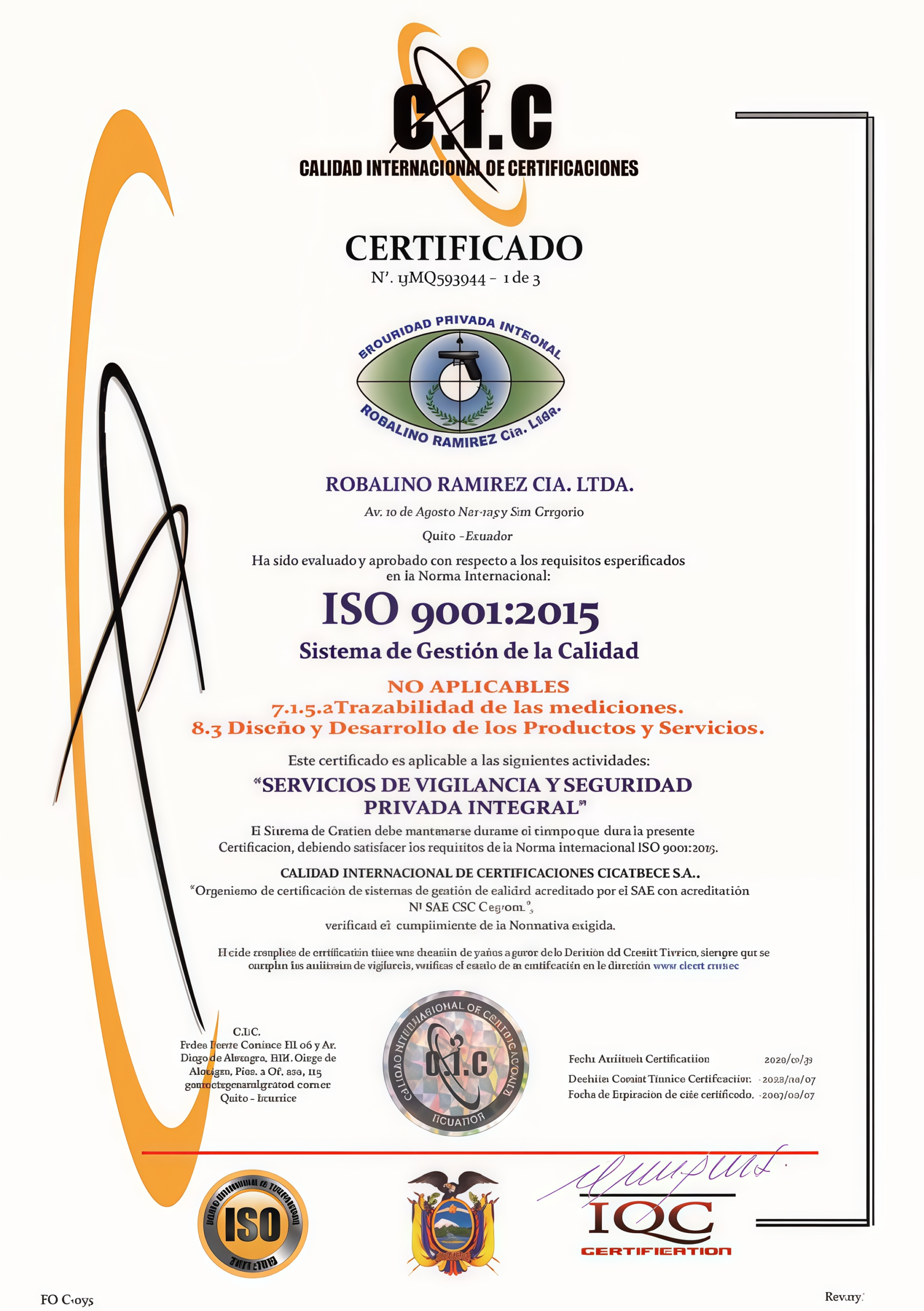 SEGURIDAD PRIVADA INTEGRAL ROBALINO RAMIREZ CIA. LTDA. Es una compañía legalmente
